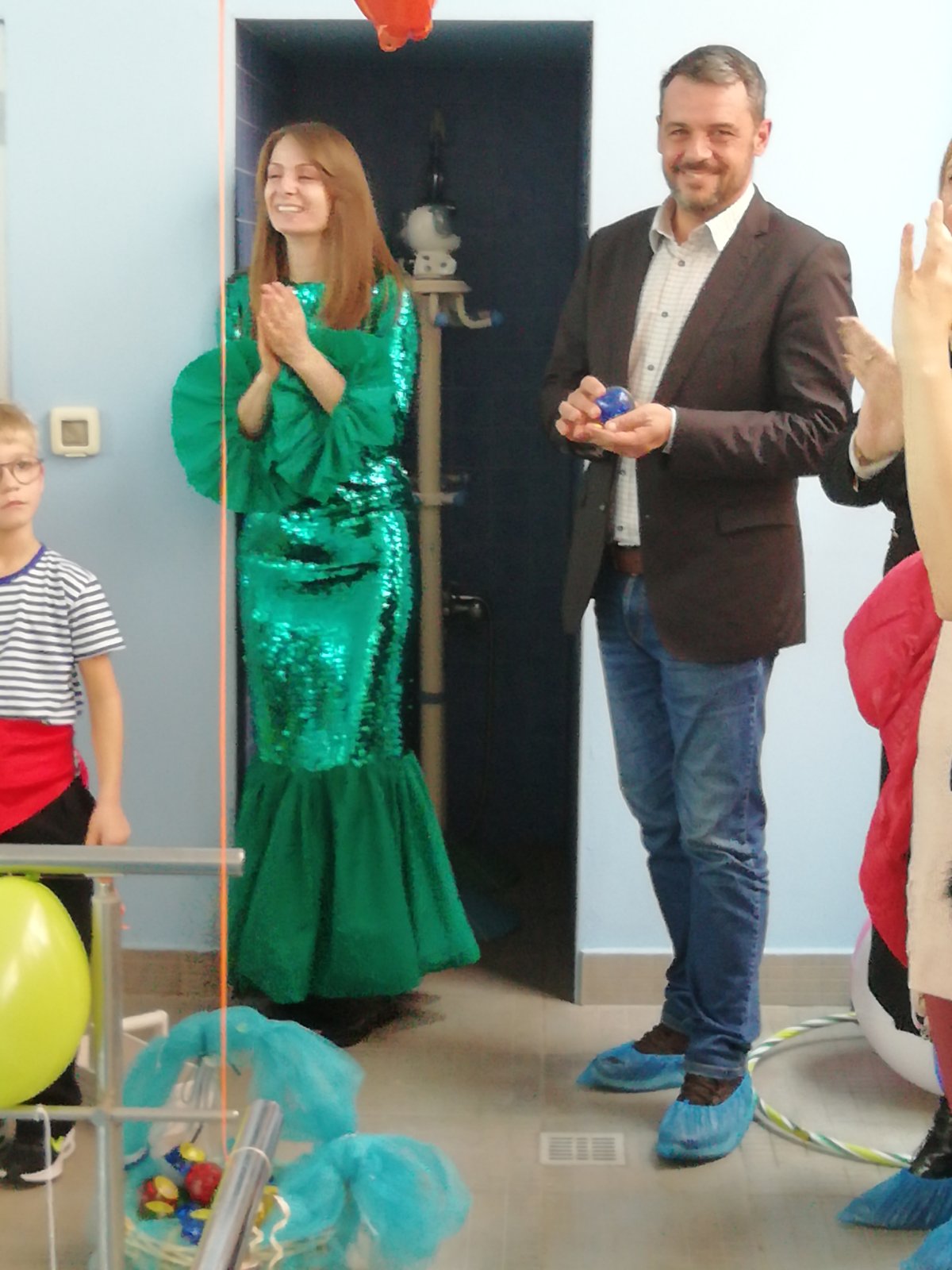 Тържеството продължи с песни и танц на златните рибки в басейна, а приказната героиня Ариел описа на всички легендата за Свети Николай Чудотворец.