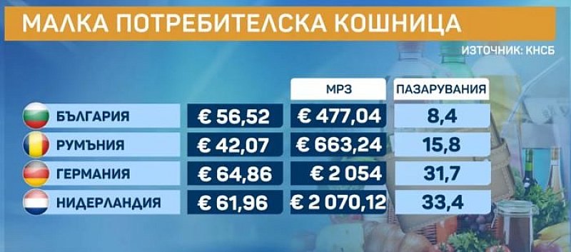 Сравнение на потребителската кошница в 4 европейски страни не е в наша изгода