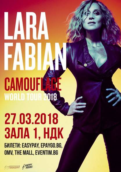 С наближаването на концерта на Lara Fabian у нас нетърпението на почитателите пораства, а местата в зала 1 на НДК понижават. След издаването на последния албум на певицата „ Camouflage”, който ще чуем онлайн на 27 март 2018-а, както и видео клиповете към първите два сингъла от него, ползата на българската аудитория се усили доста.