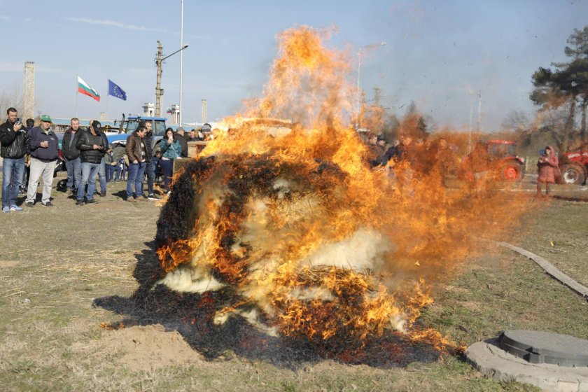 Трети ден на недоволство: Запалени бали и пътни блокади