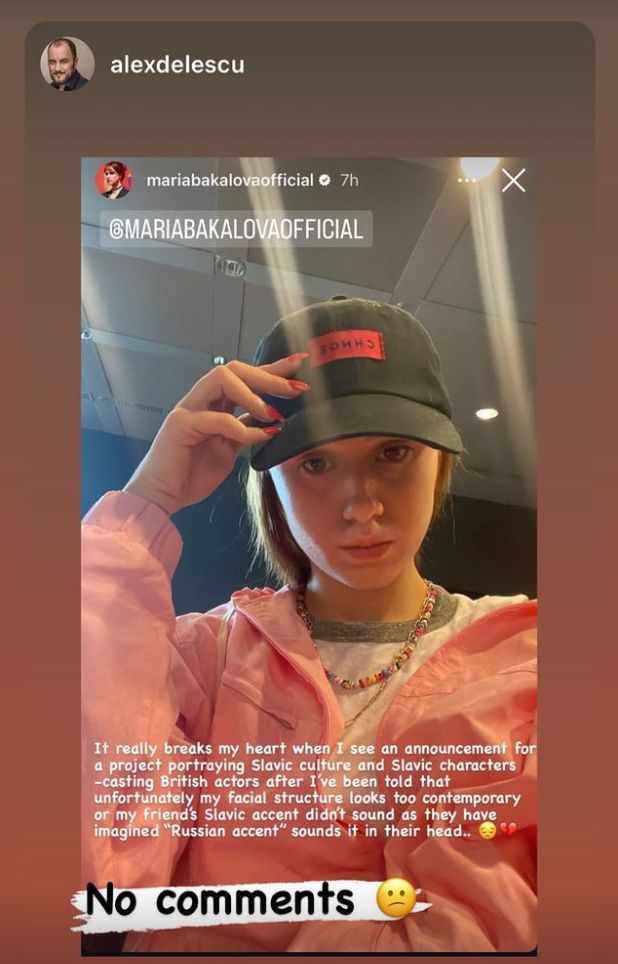 " Наистина ми се къса сърцето, когато видя известие за план, кастинг за роля, в която се изискват славянски черти и акцент, и за нея се взимат английски артисти вместо същински славяни ", заяви през сълзи се Мария. Причината за отхвърли била, че нейното лице било " модерно и не влизало в наличието на ролята ".
