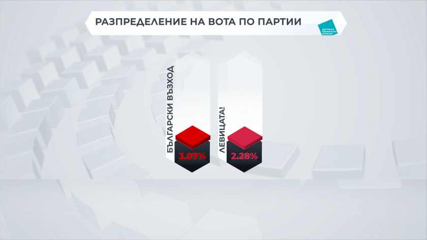 " Български напредък " - 3.07% (60 032 гласа) " Левицата " - 2.28% (44 591 гласа)