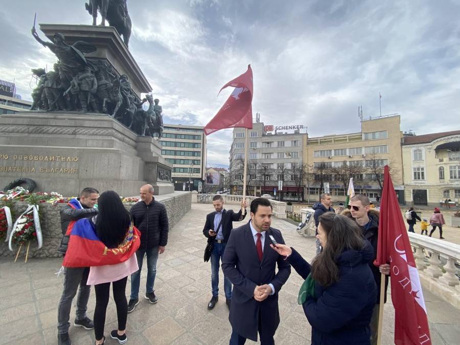 С реверанс пред паметника на Цар Освободител в София, Движение " Народна мощ " означи 142 години самостоятелност на България. " Тук сме - пред паметника на Цар Освободител, с цел да кажем ясно, че през днешния ден, на тази дата България възкръсва от пепелта като птица Феникс и да кажем още веднъж кой ни е освободил – освободила ни е една християнска страна, православна страна и тя се споделя Русия " , съобщи лидерат на " Народна мощ " доктор Георги Димов.