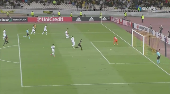 С попадение в последната минута от очевидна засада АЕК стигна до домакинско 2:2 против Аустрия (Виена) в мач от Група “D” на Лига Европа, което може да се окаже от голямо значение в края на борбата. Във въпросната обстановка Марко Ливая засече подаване на Серхио Араухо, само че без значение че беше зад последния в отбраната, страничният арбитър не видя това.