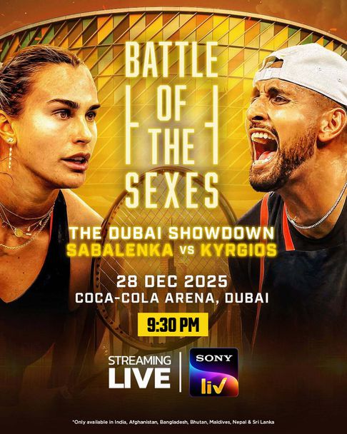 Предстоящият „ Дуел сред половете “ сред Ник Кирьос и Арина Сабаленка ще се организира на 29 декември в зала Coca-Cola Arena в Дубай, която разполага с потенциал от 17 000 места. Това ще бъде показателен мач, който бележи края на сезона.
