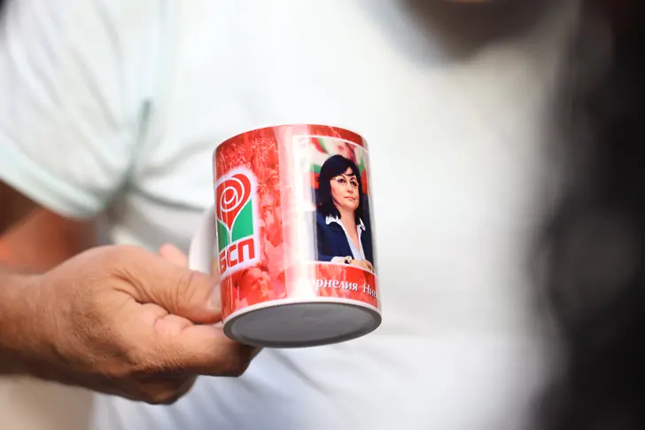 Снимка: Консерва с лика на Корнелия Нинова носеха някои от симпатизантите / Българска телеграфна агенция
