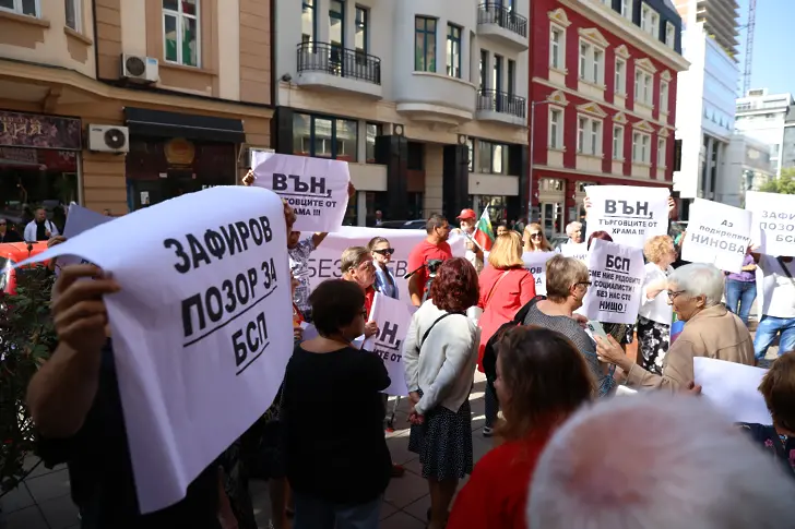 Поддръжниците на алената лидерка в оставка не им останаха длъжни и с идването си проведоха контрапротест в нейна отбрана, размахвайки плакати с лозунги като “Аз поддържам Нинова ”, “Зафиров - срам за Българска социалистическа партия ”, “Честните социалисти поддържаме Нинова ”, „ Вън, олигарсите от Българска социалистическа партия “ и други Скандираха „ Оставка “, „ Предатели “, „ Мафия “, „ Капиталисти не могат да ръководят Българска социалистическа партия “.