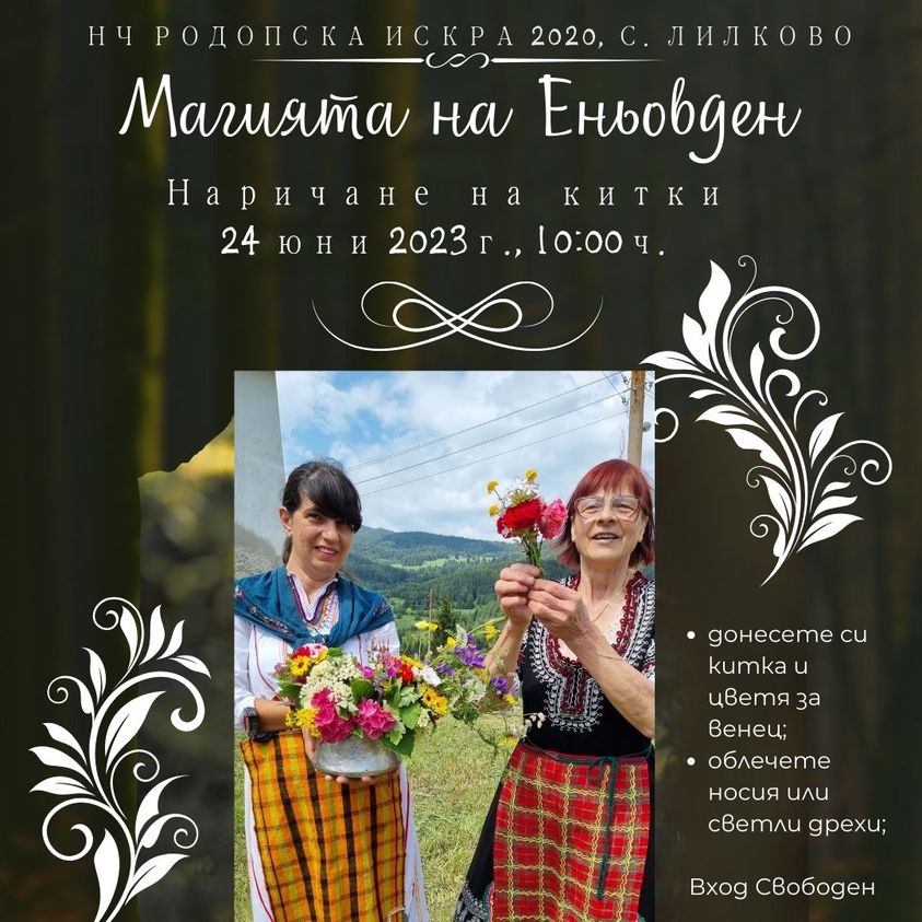 С ритуали и наричания за здраве и благодат стартира празникът на билките -Еньовден във високопланинското родопско село Лилково. От 10:00 часа ще се състои ритуалът " Еньовски мистерии - наричане на китки ". Празникът ще продължи с " Еко арт работилница за пана от капачки " с Дарина Делчева и креативно ателие " Шепот от дълбините на времето “ с Венцислава Великова, надлежно от 12:00 часа и 16:30 часа.