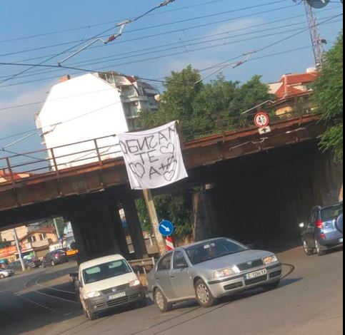 С транспаранти с нови пояснения в обич осъмна София. Това е следващо любовно обръщение, висящо от мост в последните дни. Тук обаче става дума за друго възлюбено момиче, в случай че се съди по буквите.