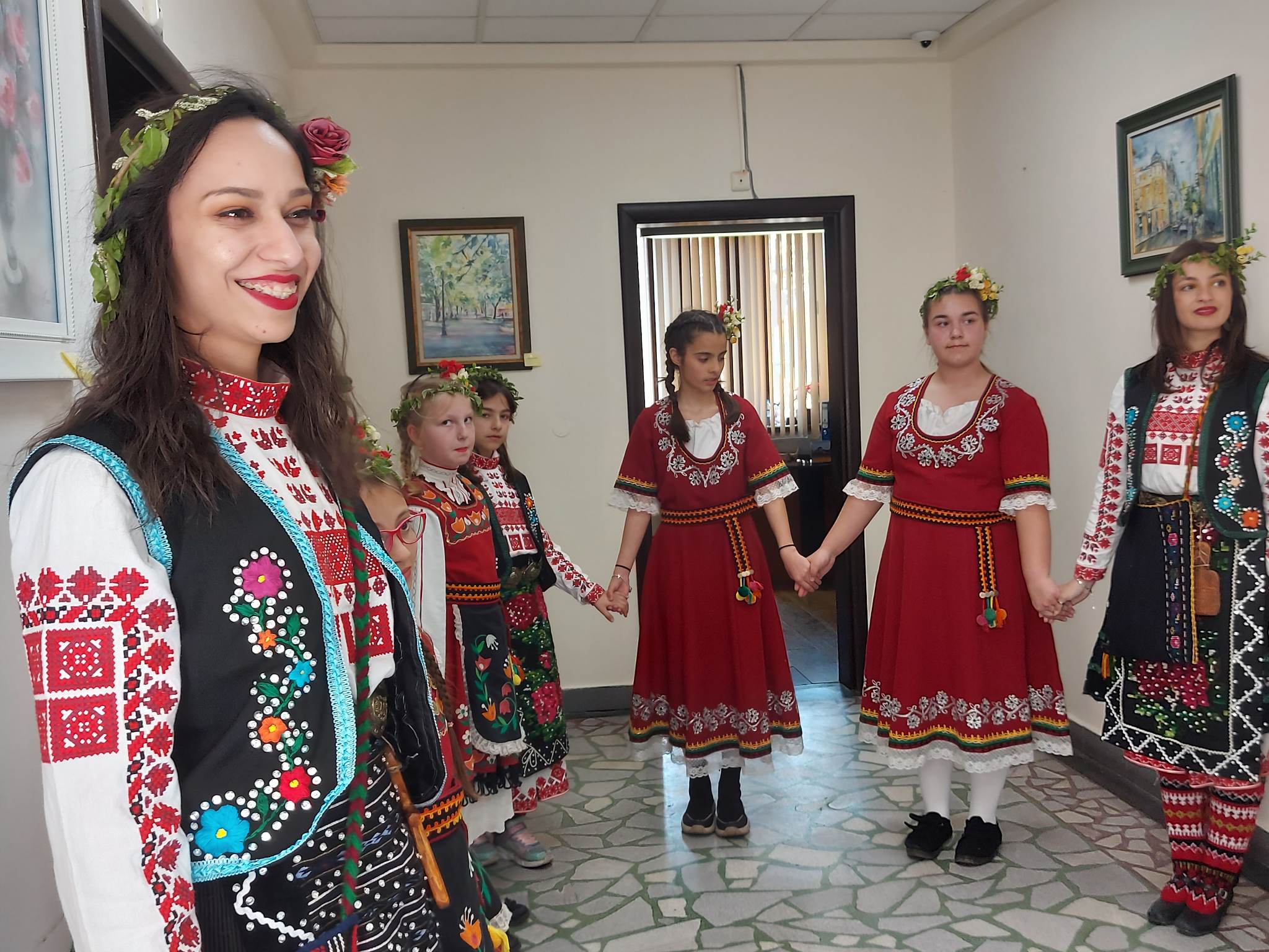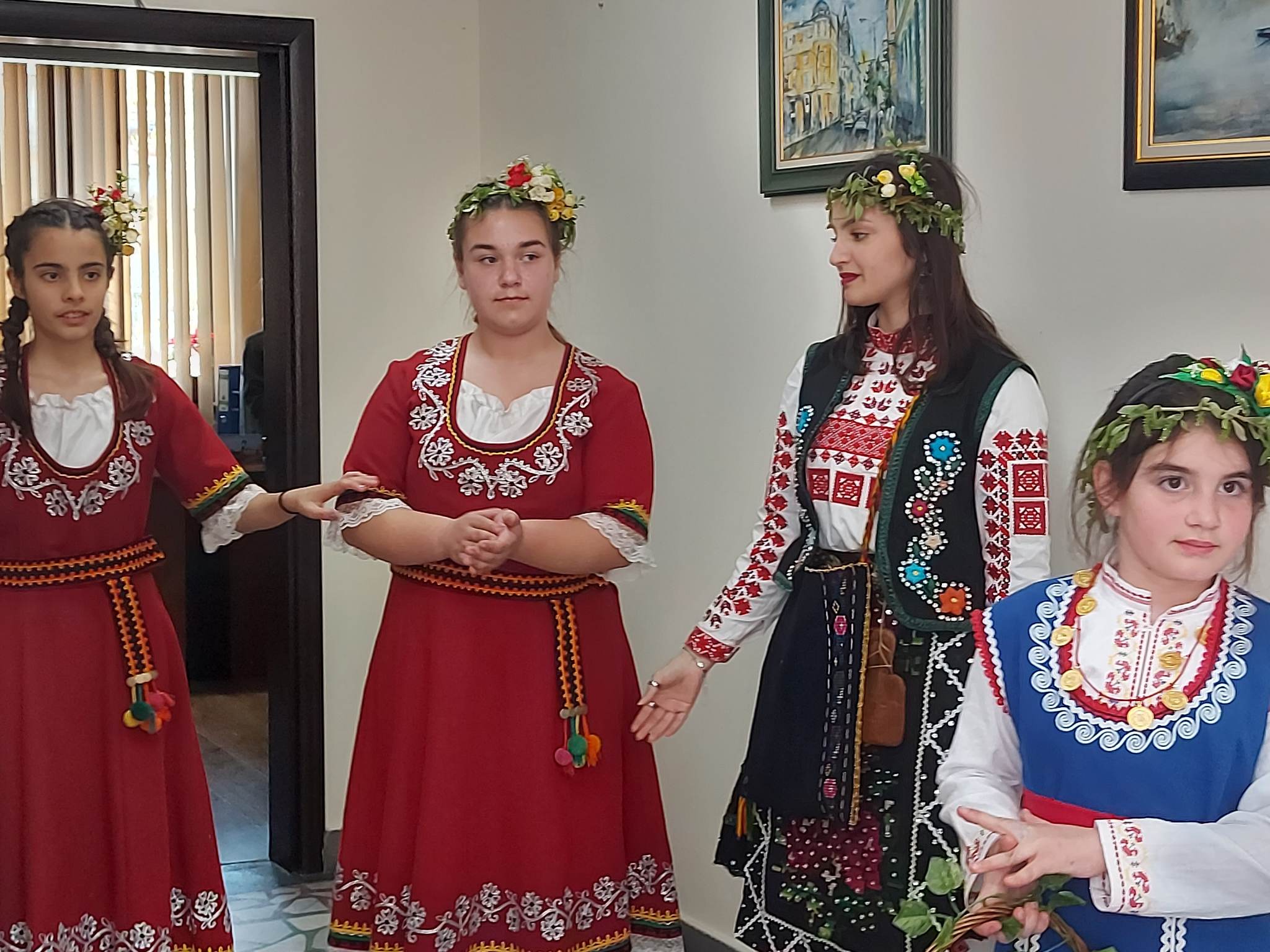 С усмихнати лица и радостни песни, накипрени в пъстри национални носии и с венчета на главите, красиви лазарки пяха и танцуваха пред чиновниците и гости в община „ Родопи “.