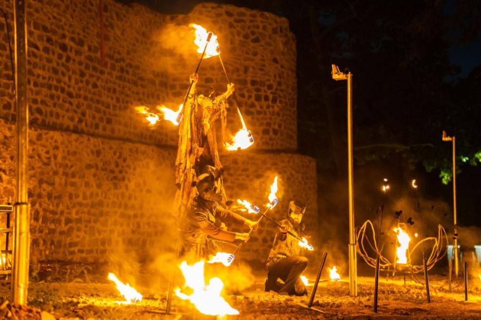 С огнено шоу откриха възстановената стена на Средновековната ямболска крепост