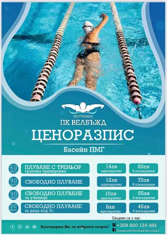 Басейнът ще се стопанисва от Плувен клуб Велбъжд и се отваря с напъните и финансирането на четирима кюстендилци- Станислав Георгиев, Антон Йорданов, Антон Тодоров и Методи Чивийски.