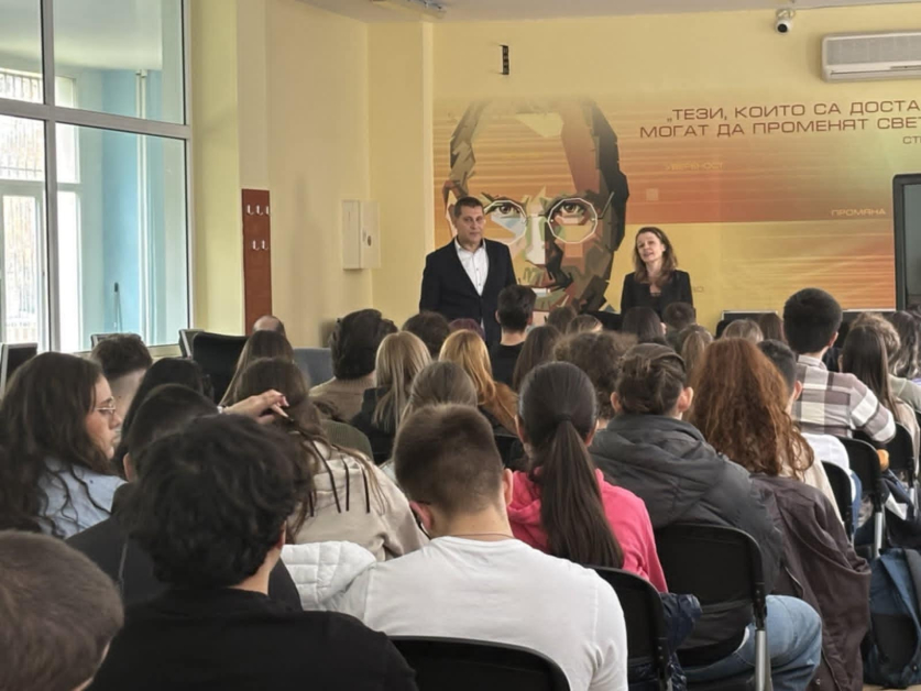 Съдия Николай Стоянов и младши арбитър Радослав Георгиев описаха за провокациите в специалността на съдията и спецификата в работата на Наказателното, Търговското и Гражданското поделение на Окръжния съд. Те дадоха образци на учениците по какъв начин всеки в всекидневието си се сблъсква с разнообразни договорни връзки – с мобилните оператори, с ВиК-дружествата, преносителите на ел.енергия, в градския превоз. Съдия Стоянов е създател на монографията „ Прекратяване на контракта за наем “ и обясни на учениците спецификата в българското законодателство при сключване на контракт за наем. Младши арбитър Радослав Георгиев обясни особеностите при подписване на трудови контракти от малолетни.