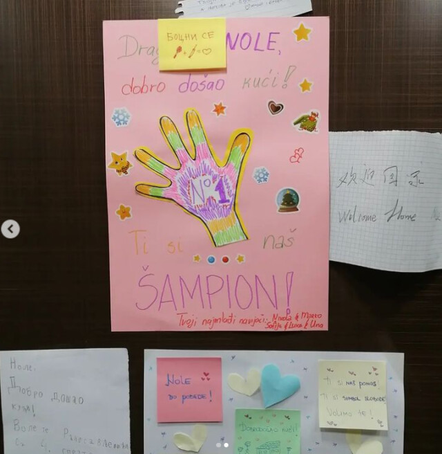 " Ноле, ти си нашият победител ", гласи надписът.