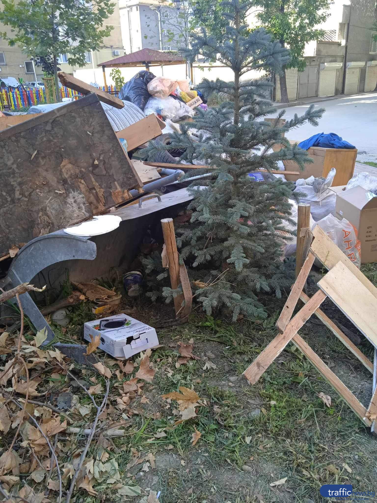 Новозасадено дръвче в Пловдив потъна в боклуци, едва се вижда