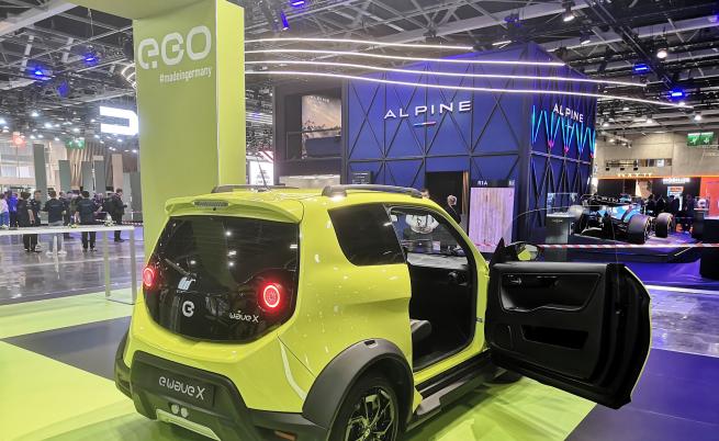 Сам, малко в страни на залата, само че и сред главните акценти (щандовете на Renault Group и VinFast) на ревюто в Париж, е дребният щанд на немската E.GO, която стартира втория си сериен модел e.wave x, кросоувър вид на e.go Life. Интересът ни към него е провокиран от вероятността този автомобил да се създава в България. Кога ще стане, дали изобщо ще стане – това към момента са въпроси с отворен отговор, въпреки към този момент да го одобряваме като факт.