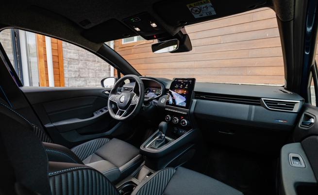 От Renault се гордеят с обстоятелството, че седалките тук са направени от 72% рециклиран PET (полиетилен) на основата и облегалката и 13% рециклиран текстил със зърнесто покритие по страните на седалките. Обемът на багажника от 391 литра подрежда Clio измежду най-хубавите в сегмента, само че хибридната система изяжда 90 л (301).
