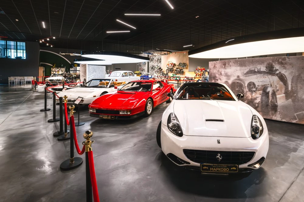 Автомузей „ Марково “ показва впечатляваща сбирка от над 70 автомобила от 19ти, 20ти и 21ви век, обхващащи разнообразни столетия и стилове. Сред експонатите ще видите легендарния Benz Patent-Motorwagen от 1885 година, паметни соц коли като Чайка и Волга, както и западноевропейски класики на Mercedes, Citroen, Lancia, и дори три модела Ferrari. Един от най-новите експонати е впечатляващият McLaren 720S – същинска перла за почитателите на актуалните суперколи.