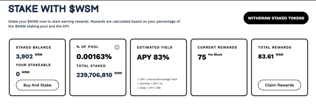Стейкингът се трансформира в един от основните фактори, когато става въпрос за вложение в криптовалути и Wall Street Memes ($WSM) не изостава в този аспект. Проектът към този момент предлага стейкинг с внушителни параметри, което сигурно прибавя стойност към цялата екосистема. Над 233 милиона $WSM токена към този момент са заложени, като доста вложители не просто задържат своите позиции, само че и ги усилват, без даже да влагат спомагателни средства.