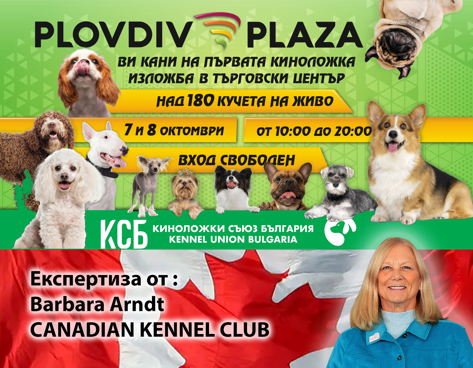 Само няколко дни ни разделят от срещата с обичаните ни четириноги в днудневна стратегия от 10 до 20 часа! На 7 и 8 октомври (събота и неделя) австралийско келпи, корги, японски териер, перуанско голо куче, съветски той, джентълмен кингс чарлз спаниел и още доста ще завладяват комерсиалния център Plovidv Plaza Mall. Животните ще бъдат оценени от госпожа Barbara Arndt, лицензиран арбитър, който ще дохвъри персонално от Канада????????за мероприятието! Госпожа Arndt е ескперт в оценяването в няколко континента - Австралия, Северна и Южна Америка, Африка и Европа! Различните породи са разновидности на FCI групи, някои от които първенци в няколко страни и категории, като част от участницие пътуват от цяла България, а други от Гърция, Турция, Естония, особено, с цел да се явят на състезанието.