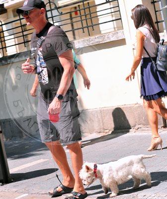 Само с белия териер от връзката си с Радина Кърджилова остана Деян Донков. Един от секссимволите на родното кино и спектакъл бе засечен да разхожда шотландския уест териер Чика.