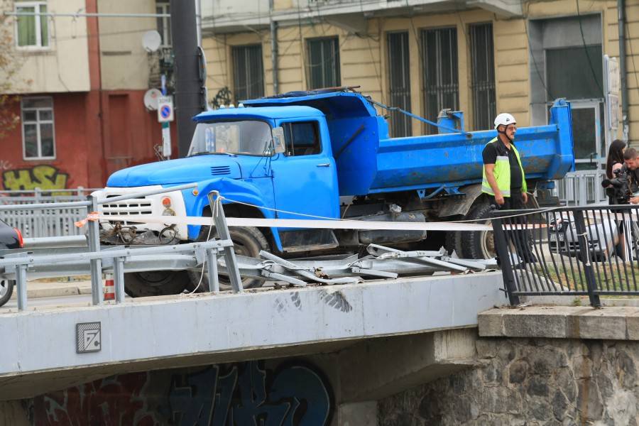 Самосвал надвисна над Лъвов мост. Инцидентът стана към 10.20 ч. през днешния ден, съобщи кореспондент на БГНЕС.