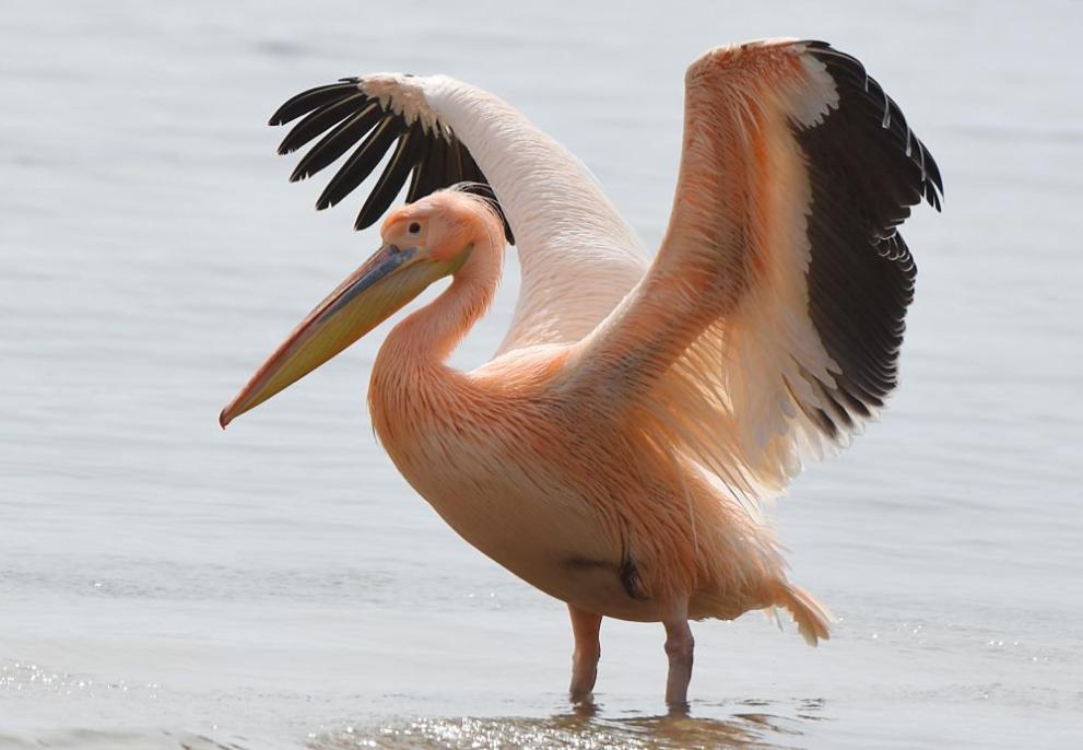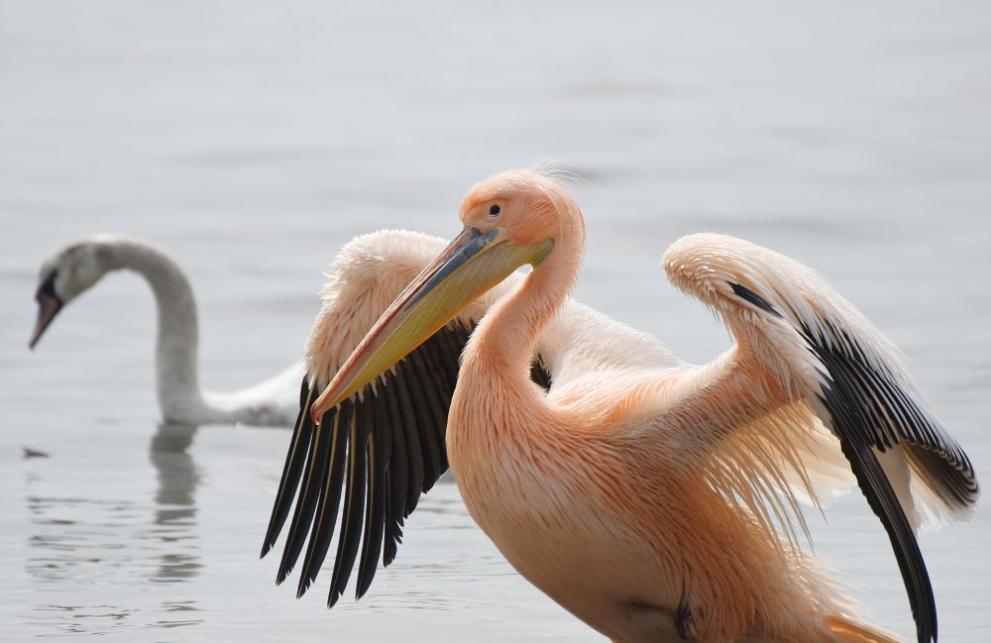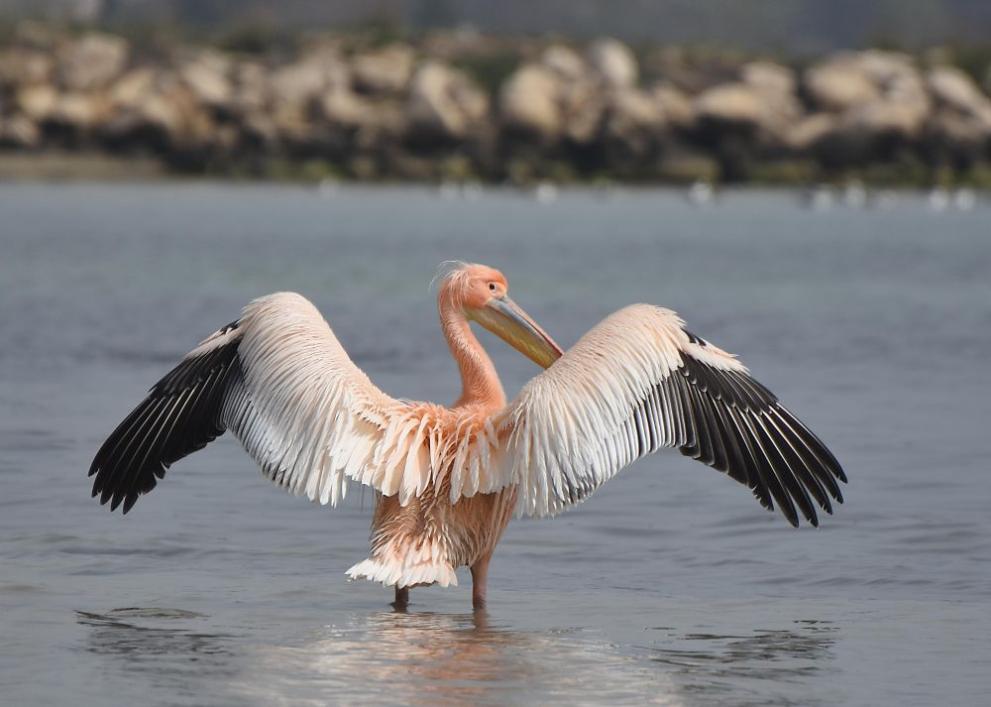 Самотен розов пеликан се появи край първа буна във Варна и провокира интерес.