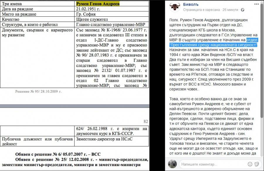 Става въпрос за зам.-министъра на вътрешните работи полк. Румен Генов Андреев. Съгласно публична информация, той се е самоубил с изстрел в главата в местността " Щъркелово гнездо " край София. Основната тиражирана версия – фамилен скандал.