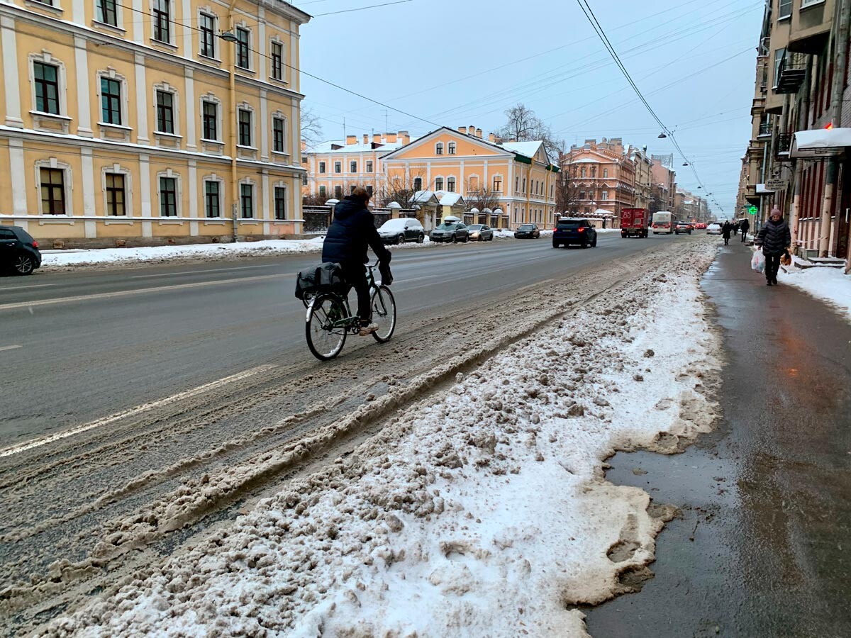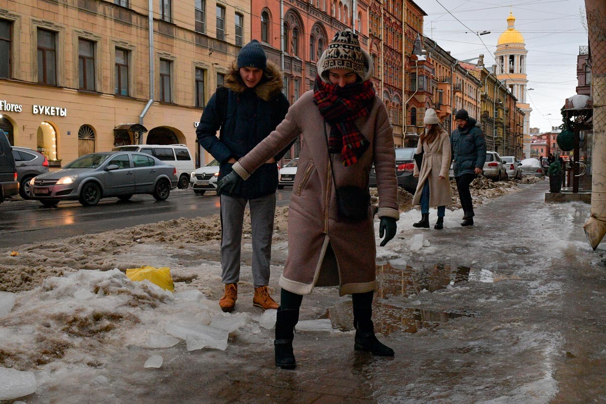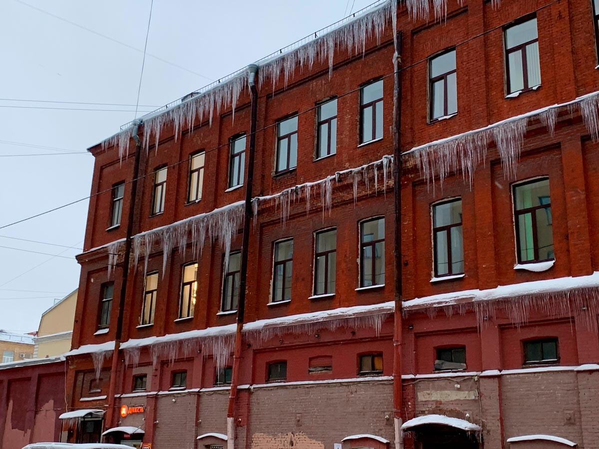 Ежедневното пътешестване до работа на петербургчани повече наподобява на писта с трудности. Ако през нощта има снеговалеж, който да вдигне равнището на снега с 15-20 см повече, локалните поданици знаят, че ще би трябвало да си проправят път през него сами. Първо, ще би трябвало да създадат тясна пътечка до най-близката метростанция или автобусна спирка. След това – в случай че са късметлии да работят в невероятния исторически център, ще би трябвало да преодолеят разнообразни трудности като лед под снега, по-който стъпват, и дълги ледени висулки, сходни на сталактити, висящи над главите им. Понякога те падат.