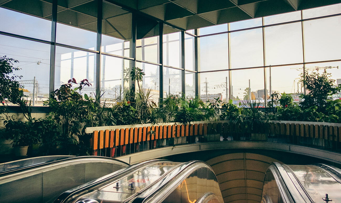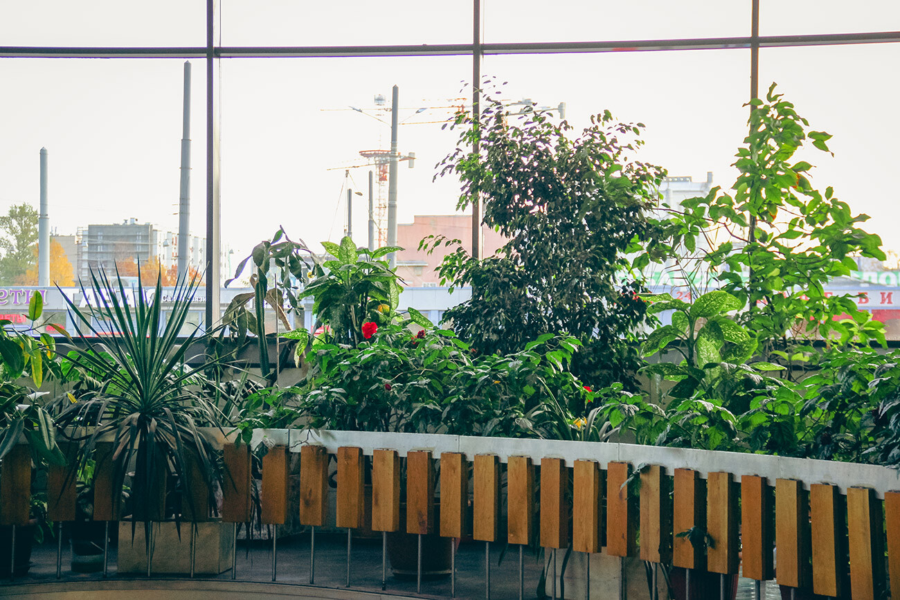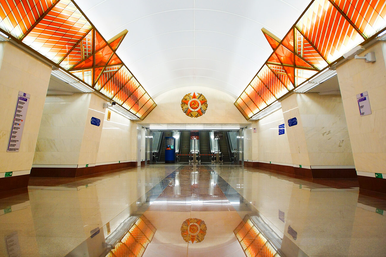 Подземната част е облицована с травертин, а подовете – със сив гранит. Нагоре по стълбите има огромно пано – на него са запечатани служащите, взели участие в революцията през 1917 година. Отвътре станцията наподобява типично, по тази причина ви предлагаме незабавно да се качите горе, с цел да се насладите на оранжерията.