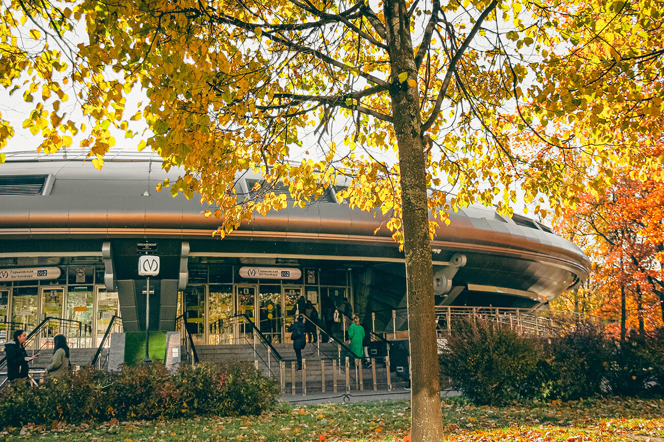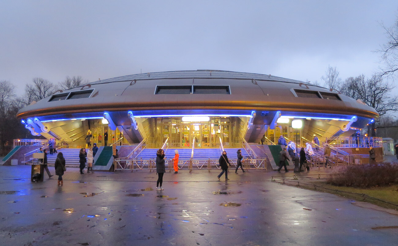 Това е най-космическата станция в града – тя е издигната във формата на голяма летяща паница. Но не приема този си тип незабавно. Станцията е открита през 1963 година и тогава е елементарен павилион с кръговиден покрив. В епохата на Съюз на съветските социалистически републики в горния павилион работи кафене, където може да се закуси и даже да се пие шампанско. През 2009 година станцията е реконструирана и превърната в НЛО.