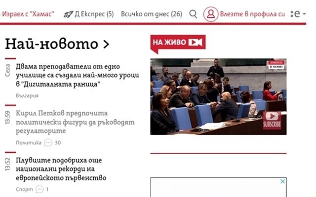 Съпруга на български народен представител, поискал анонимност, провокира огромна блъсканица в съботния ден. Докато дамата пиела утринното си кафе, почнала да преглежда новините, а брачният партньор й добродушно спял, изтощен от конституционния маратон в петъчния ден, когато депутатите работиха 9 часа. Попаднала на уеб страницата " Дневник " и видяното там я стреснало - течало непосредствено предаване на пленарно съвещание, водено от шефа на Народно събрание Росен Желязков.