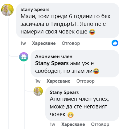 „ Мали, този преди 6 години го бях засичала в ТиндърЪТ. Явно не е намерил своя човек още ” – разяснява Станислава фотоса на младо момче.
