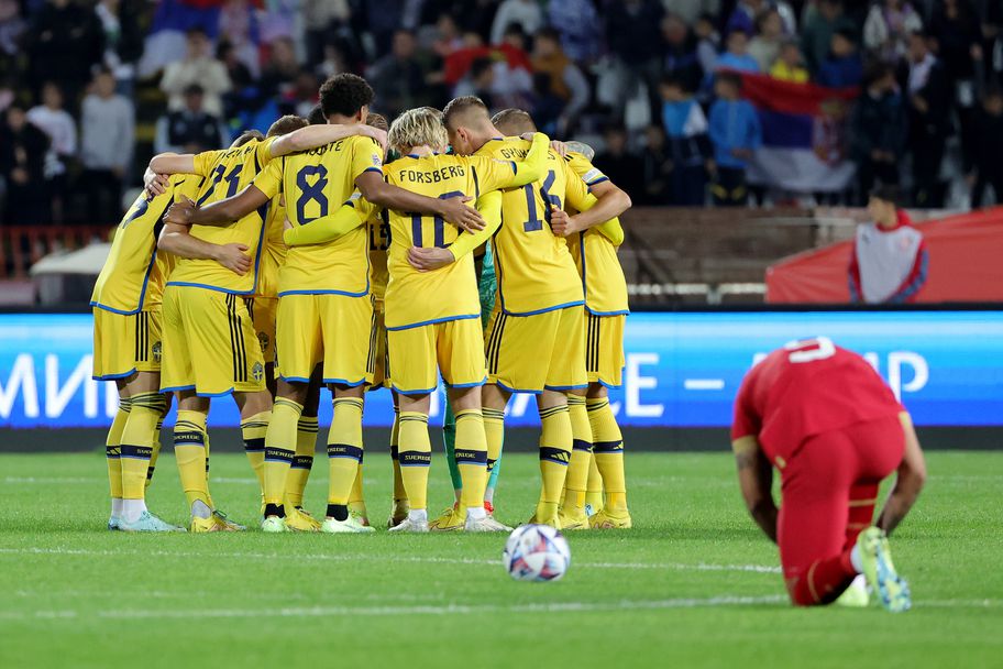 Шведите излязоха с трима нападатели в лицето на Деян Кулушевски, Виктор Гьокерес и Емил Форшберг. В халфовата линия Ян Андершон се довери на Виктор Клаесон, Матиас Сванберг, Йенс-Лис Мишел Кажус и Лудвиг Аугустинсон.