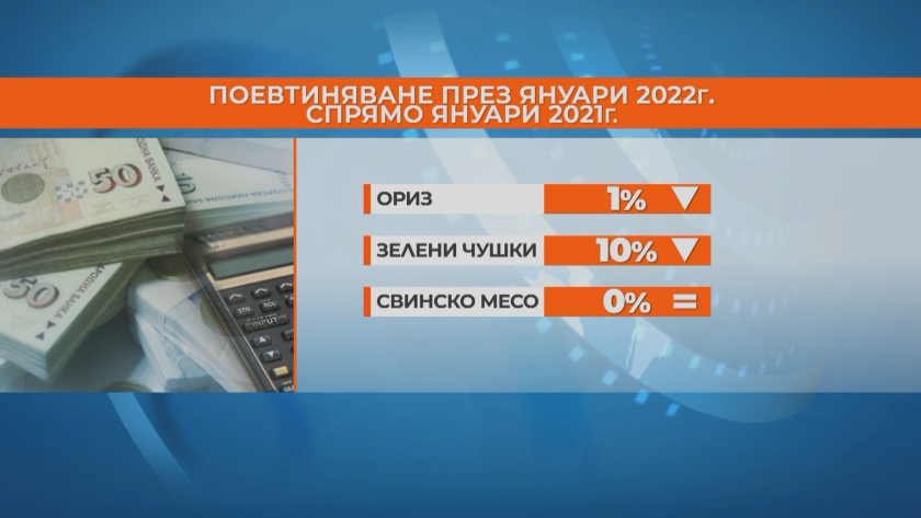 Все отново при някои храни има въпреки и минимално, поевтиняване спрямо предходната година. Оризът е поевтинял с 1% поради положително международно произвеждане, а свинското месо резервира цената си поради свръхпредлагане в Европа.