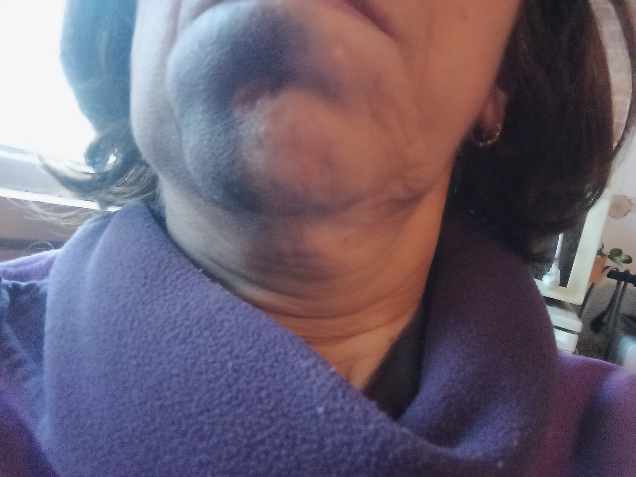 Пострадалата показа фотография, на която виждаме следствията от неприятния случай - долна част на лицето й е посиняла и съществено подута.