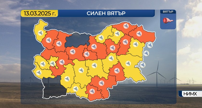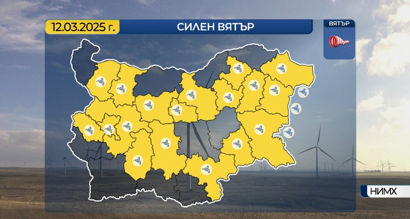 Със мощния вятър и температурите не престават да се покачват - в София минималната е 10°, във Варна - 14°. Най-силни са поривите напразно досега в планините - над 120 км/ч на Черни връх, а във Враца доближиха 80 км/ч. Все по-ветровито ще бъде след обяд, изключително на север от планините и в Източна България, където ще духа мощен и стремителен южен вятър, с пориви до близо 90 км/ч в регионите с разгласен жълт код.