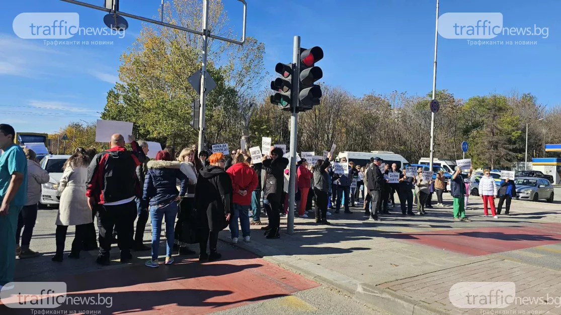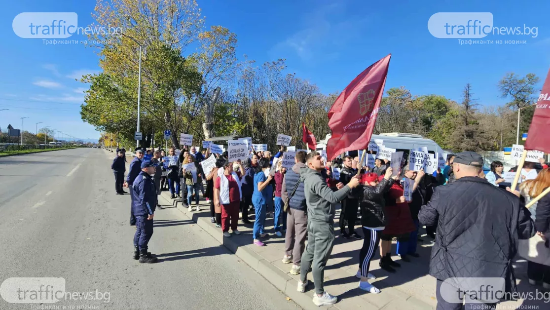 Медици от УМБАЛ–Пловдив блокираха кръстовище, викат Бойко Борисов да им помага СНИМКИ+ВИДЕО