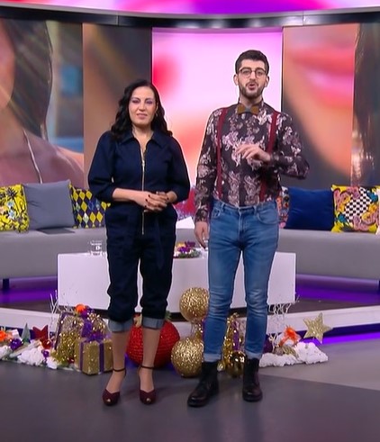 Сашо и Деси се появиха и със чудноват дизайн в долната част на облеклата си. И той, и тя бяха с навити крачоли, като при Кадиев те бяха над зимни кубинки, а при Стоянова – над обувки с токчета.