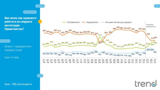 Служебното държавно управление последователно повишава поддръжката за своята работа, като през юли 40% заявяват, че имат позитивна оценка за него, а 42% негативна.