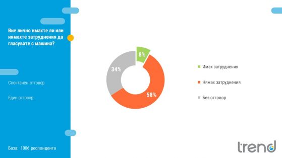 Само 8% са имали усложнения да гласоподават с машина, като измежду тях доминират най-възрастните. Сред възрастовата група 70+, малко над една четвърт споделят за усложнения.