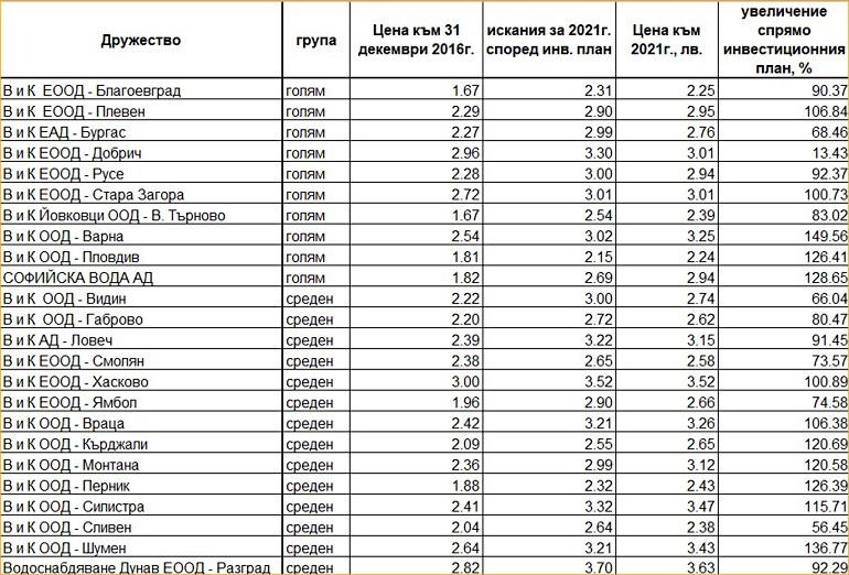 От Таблица 2 се вижда, че с няколко изключения сдруженията са получили над 90% от поисканите в капиталовия проект нарастване на цената, против което би трябвало да реализират заложени от КЕВР целеви равнища на качество на „ услугата “. Половината от тях са получили нарастване на цената даже над заложената в капиталовите проекти (тези над 100%). И да не забравяме, че всичко това е за сметка и на гърба на потребителите. От друга страна, на тези, на които не са дадени задачите нараствания демонстрира, че въпреки всичко КЕВР е оценявала неизпълнението на капиталовите проекти през годините.