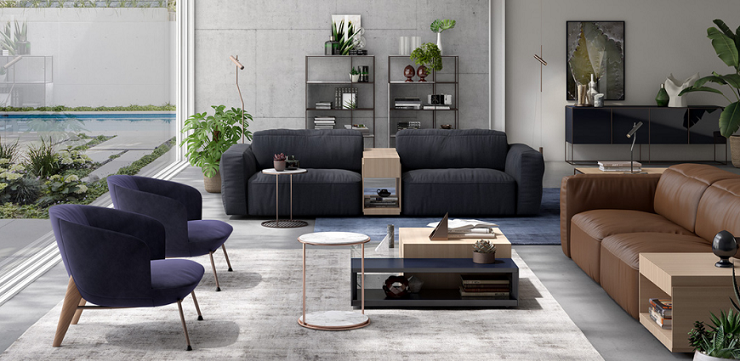Квадратните и линейни форми на са в съвършена естетика с меките му възглавици. Ниските места за сядане оферират комфорт и естетическа прелест. Красотата подхожда на нововъведенията в този диван: механизмът, вграден в него, обезпечава оптимален комфорт посредством регулиращите се подглавник и поставка за крайници. Специално направените " прищипани " шевове оформят възглавниците и акцентират тапицерията. Моделът Iago преоткрива класическото чувство за мебел и е съвършен акцент в дневната.