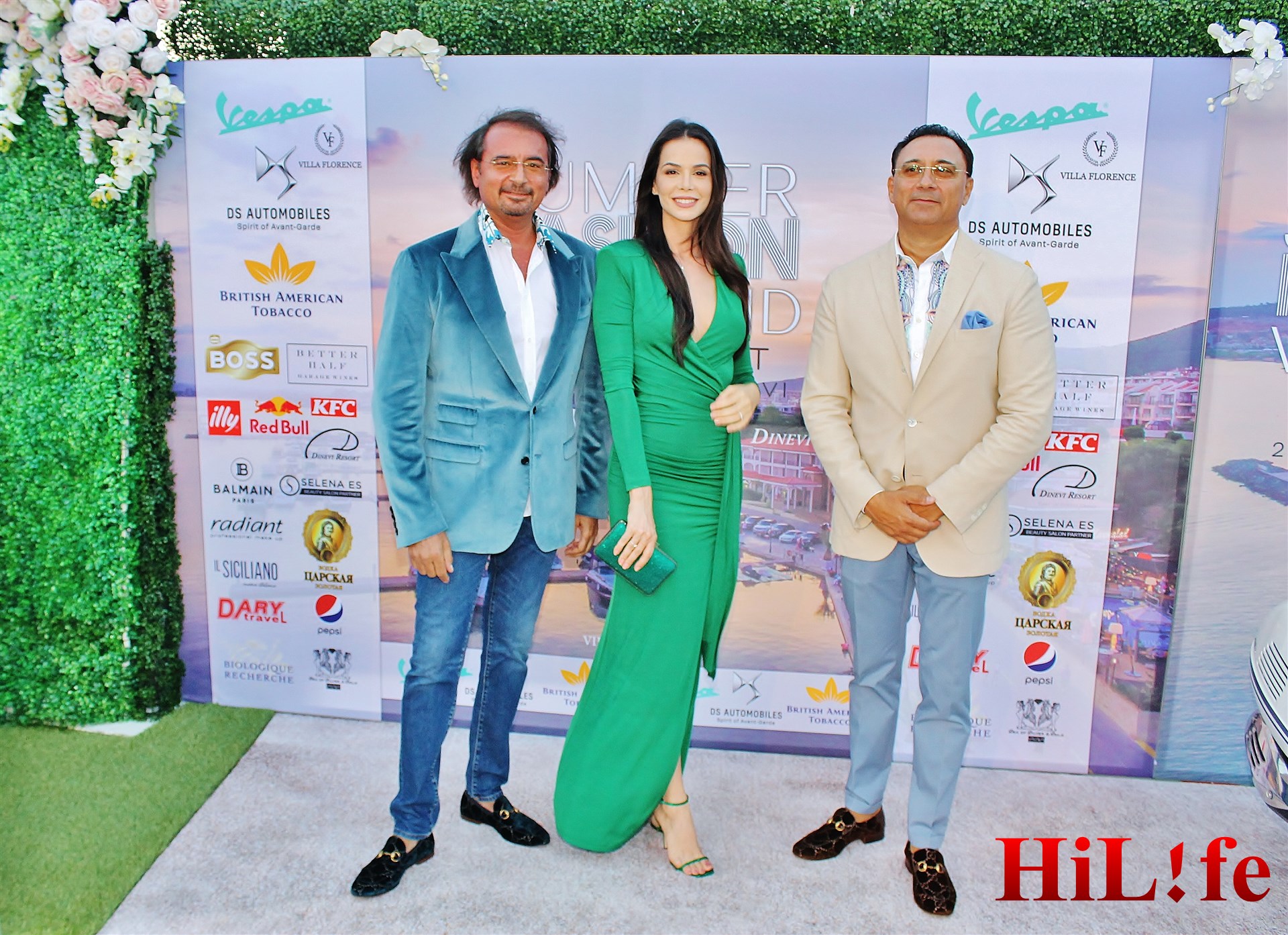 Динко и Йордан Диневи привлякоха погледите с шикозни сака и кадифени мокасини Gucci. Даниела бе очарователна нимфа и допълваше двамата си кавалери със стилна смарагдово зелена вечерна рокля, дело на италиански дизайнер