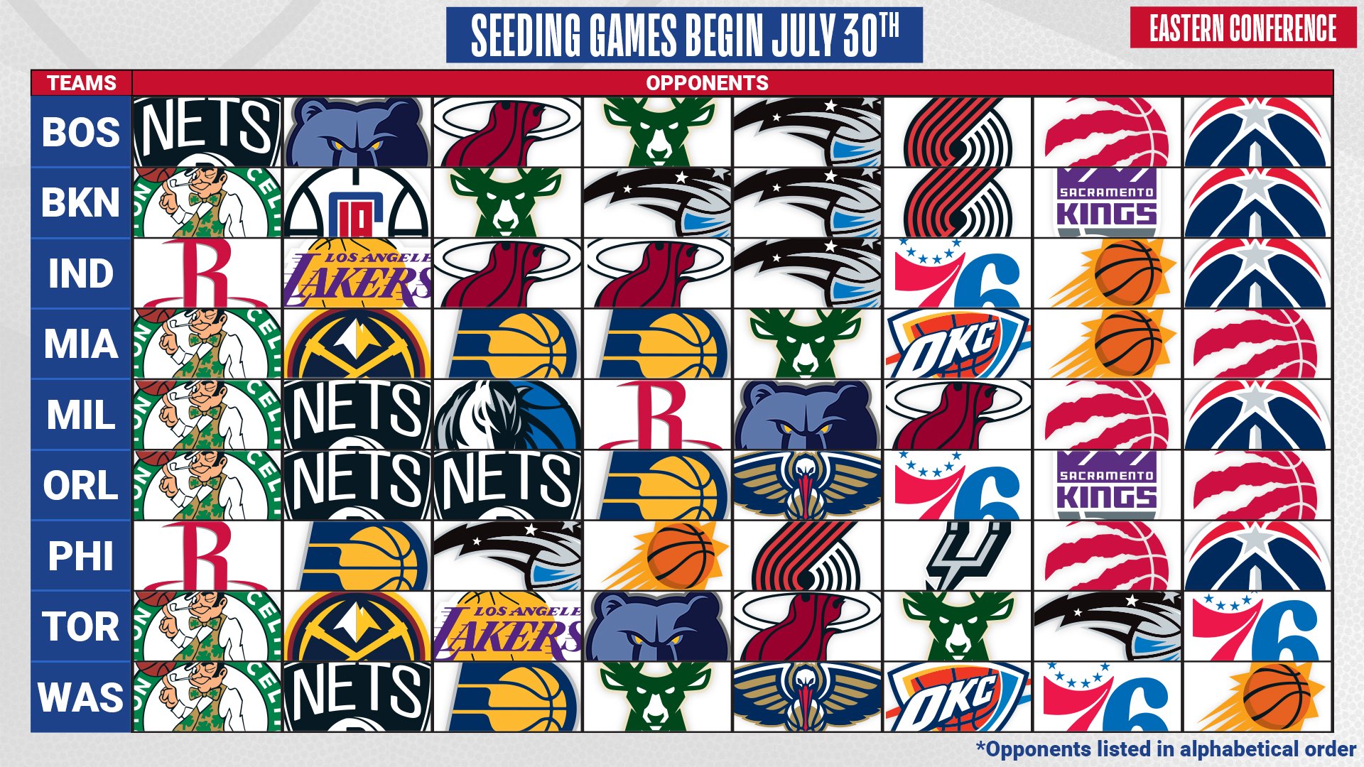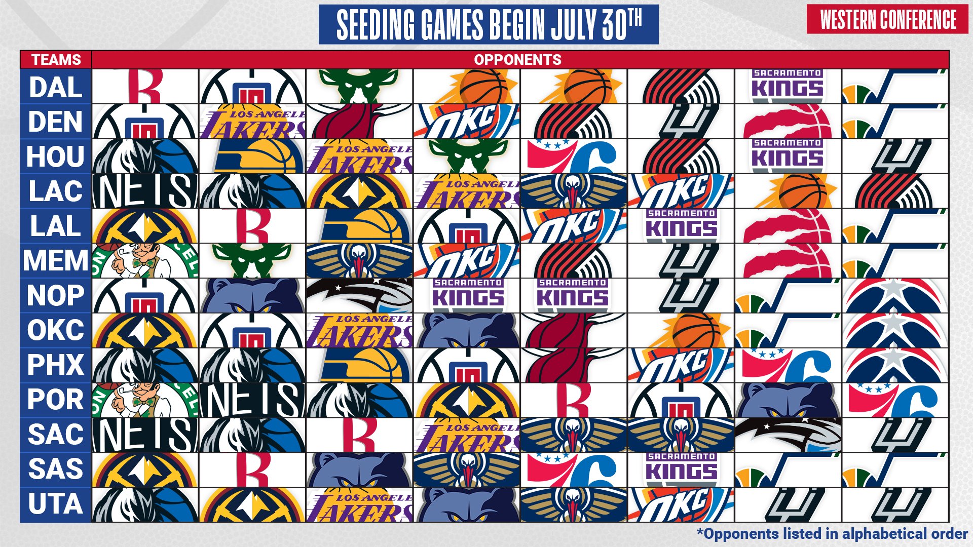 Сблъсък сред двата любимеца от Западната конференция навръх рестарта на сезона ни чака на 31 юли сутринта. ЛеБрон Джеймс и Лос Анджелис Лейкърс ще се изправят против Кауай Ленърд и Лос Анджелис Клипърс за четвърти път през сегашния сезон в среща с начален час 4:00 през нощта. Самият рестарт на сезона пък се дава два часа и половина по-рано с мач сред Юта Джаз и Ню Орлиънс Пеликанс.