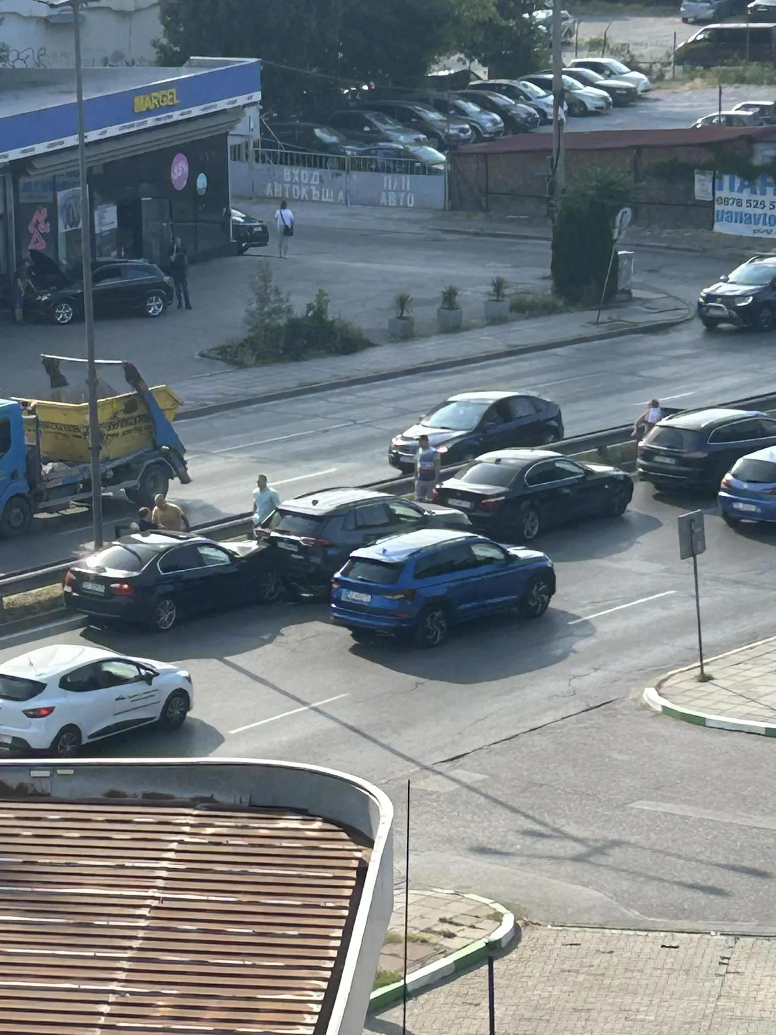 Сблъсък сред няколко автомобила на бул. „ Акад. Иван Евст. Гешов “ в София провокира съществено запушване по направлението към Красна поляна. Инцидентът е станал преди минути, а по неофициална информация от очевидци, участващи в придвижването, лявата лента в сектора е изцяло блокирана.