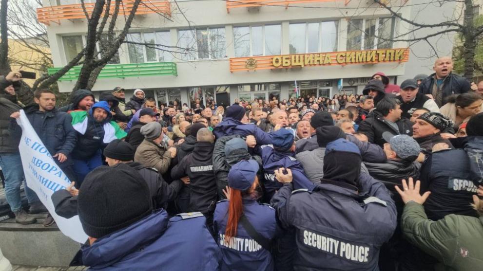 Сблъсъци и напрежение сред протестиращи пред община Симитли.