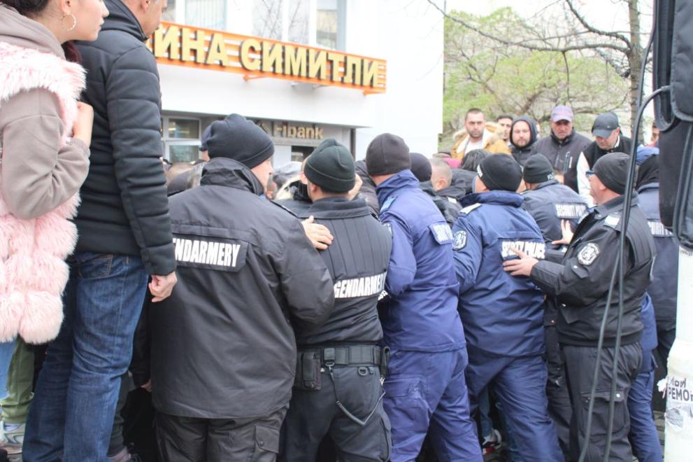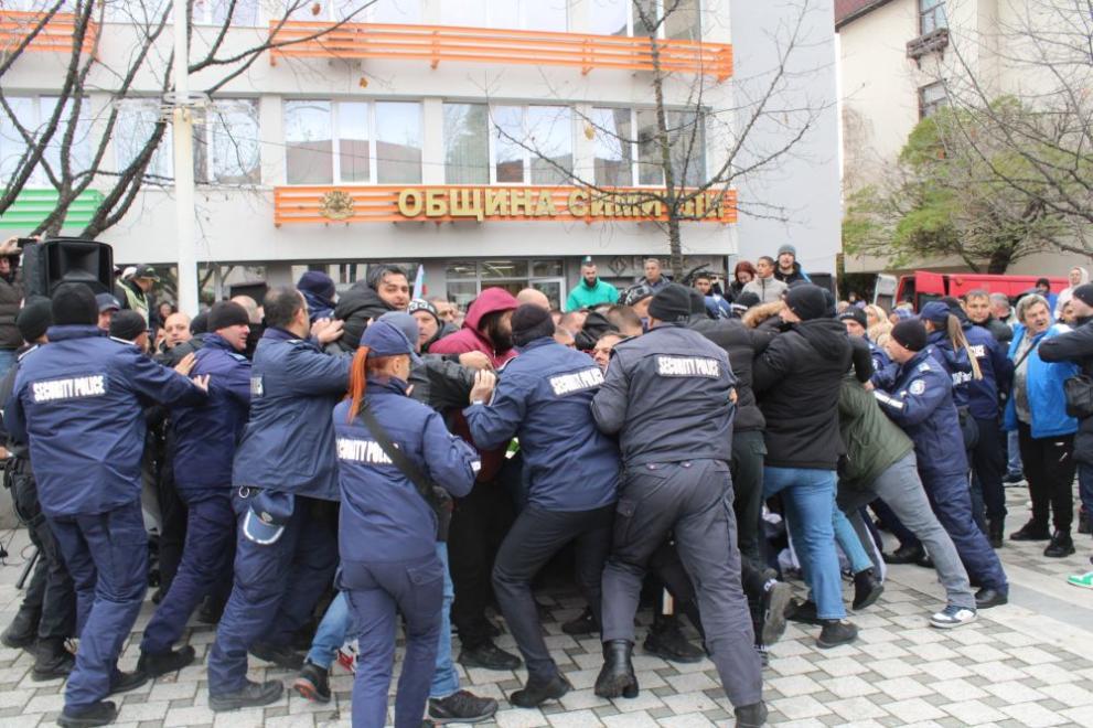 Сблъсъци и напрежение между протестиращи пред община Симитли