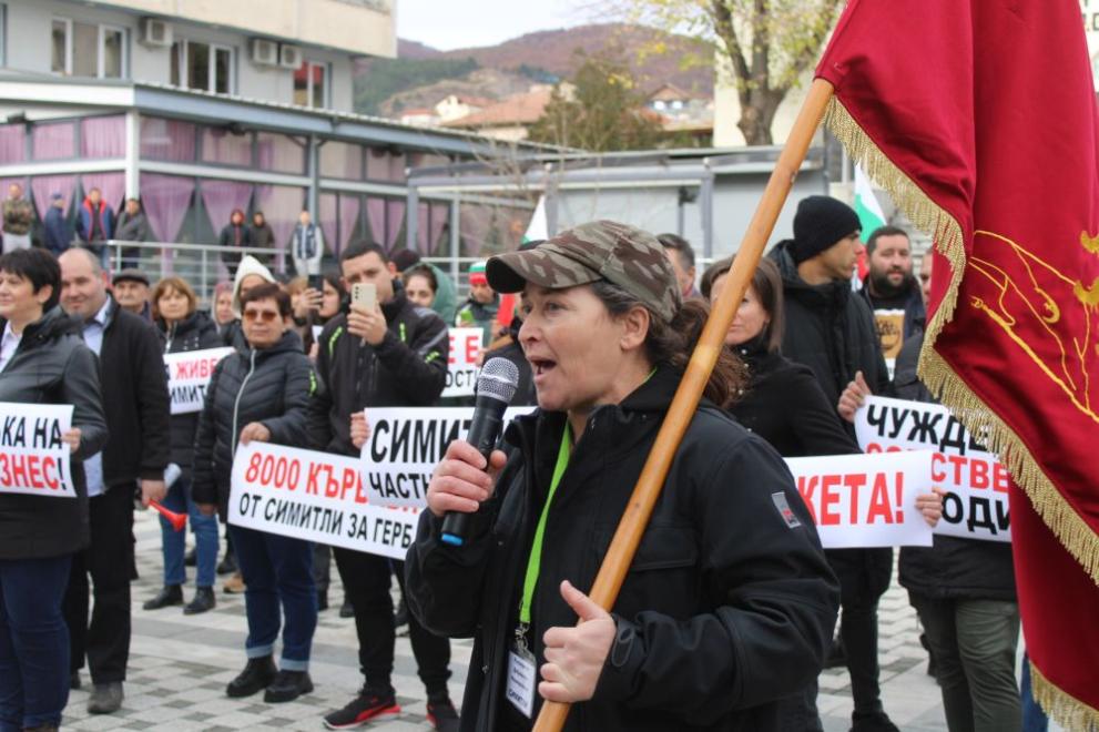 БГНЕС Бизнес дамата Ангелина Попова провежда по обяд митинг под наслов: „ Искам да работя и пребивавам в България “, кметът на Симитли Апостол Апостолов свика контрапротест.