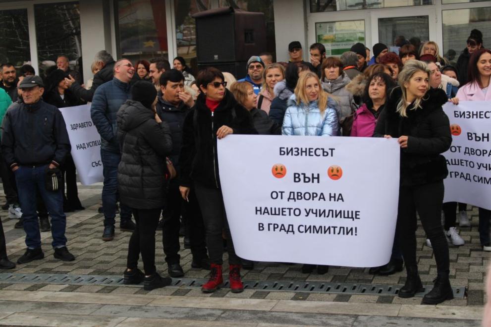 Бизнес дамата Ангелина Попова провежда по обяд митинг под наслов: „ Искам да работя и пребивавам в България “, кметът на Симитли Апостол Апостолов свика контрапротест.
